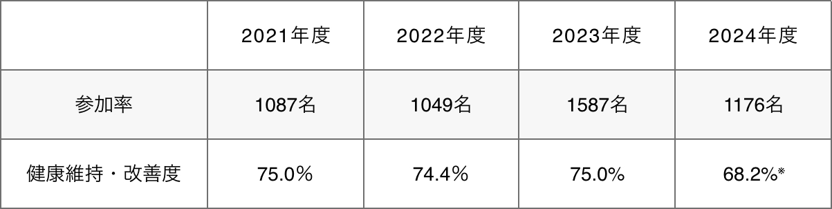 ※健康維持・改善率は、定期健康診断の判定が改善した者の数値で算出しているが、2024年度は判定基準の見直しを行い、基準を厳格化。