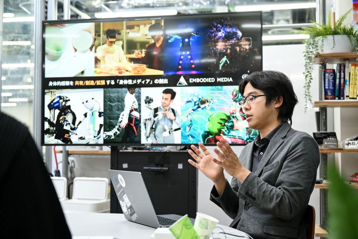 もともと僕は2005年~2010年くらいにかけて、学生としてVRを研究していました。当時VRは知る人ぞ知る技術でしたが、ディズニーランドがある千葉県の浦安に住んでいたことからああいう体験づくりにとても興味を持っていて、VRも新しい体験を創造する技術として面白いなと思ったのが最初の研究のきっかけです。VRはメタバースにおいてひとつのインフラになるといわれていますが、僕らは1人1人の人間がそこで何を体験するか、そしてテクノロジーがいかに新しい経験を創り出し、その経験によっていかに人と人とのつながりが再構築されるかに関心があって、生身の身体だけでは得られない体験をどうテクノロジーの助けを得ながら実現させるかを研究しています。具体的には触覚を使って全身で体験できる装置だったり、アバターを使って離れた場所にテレポーテーションするような技術、あるいは尻尾をつけたり腕を増やすなど身体を拡張させるような技術を研究しています。そうした考え方のベースとなるのが、身体を僕らが世界とつながるための媒体ととらえる「身体性メディア」というコンセプトです。