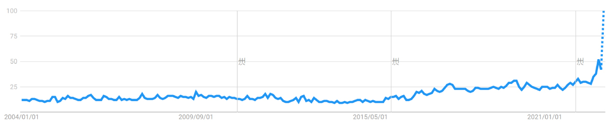 まずひとつは、今まで人間の専売特許と考えられていたクリエイティブ領域にAIが足を踏み入れたことによって、ニュースなどで話題になったことが背景として考えられます。以前までは、AIといえば事務作業の効率化に便利なものというような認識でしたが、絵や文章、作曲などの分野にもAIが進出し、さらにそういったAIツールがオープンソース化したことによって爆発的にAIへの注目度が高まったと考えられます。
