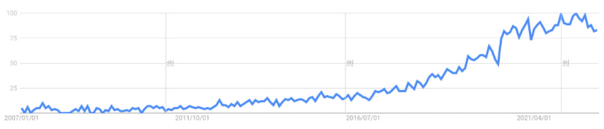実際、Googleトレンドで「肯定感」と検索してみると、2016年頃から徐々に検索数が増加し続けており、近年ではその検索数は非常に多くなっています。「肯定感」が現代を生きるうえで重要な要素になっていると考えられます。
