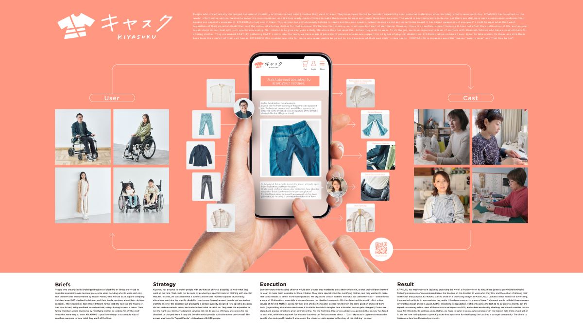 「着たい服を着る日常を、すべての人に。」をスローガンに、病気・怪我など様々な理由で服の選択肢の少なさに悩む人に向け、身体の不自由に合わせて「既製服を着やすくするお直し」を提供する日本初のオンラインサービス。前田哲平氏が代表を務める株式会社コワードローブのサービスとして2022年3月にローンチ。プロデューサーとして博報堂ケトルの日野昌暢、デザイナーとして博報堂の志村洸賀、プラナーとして博報堂ケトルの冨来大二朗が参画している