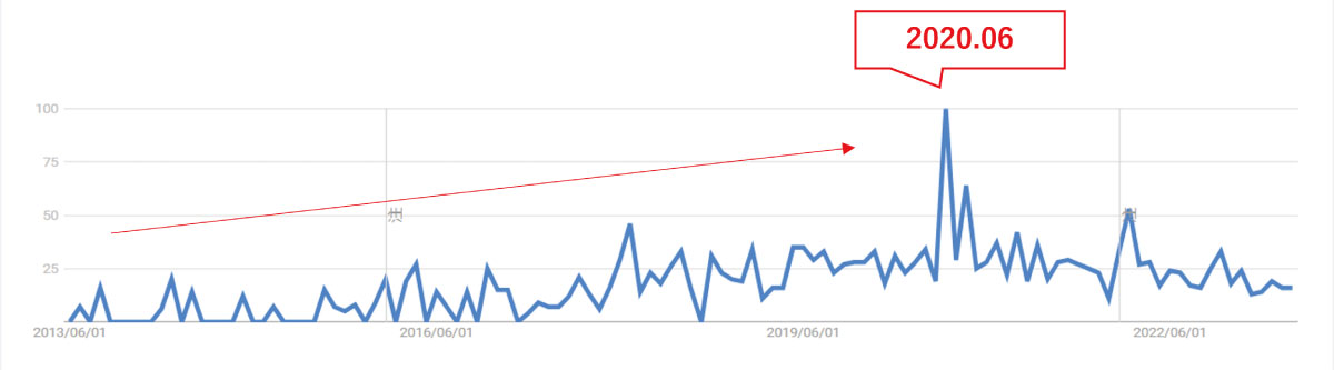 ここまでモノとモノの交換例をご紹介しましたが、「ノーマネーディール」の例はモノに限りません。スキルを提供することで対価をもらう新しい価値交換のカタチが広がっています。これは広義にはスキルシェアと呼ばれるもので、Google トレンドで調べてみるとコロナウイルス発生直後の時期を最大値としながら、ここ数年検索数が伸び続けていることがわかります。