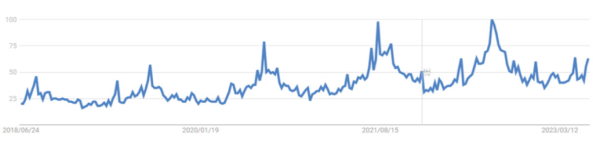 実際にGoogleトレンドで「直売所」と調べてみると、近年どんどん注目が高まってきていることもわかりました。