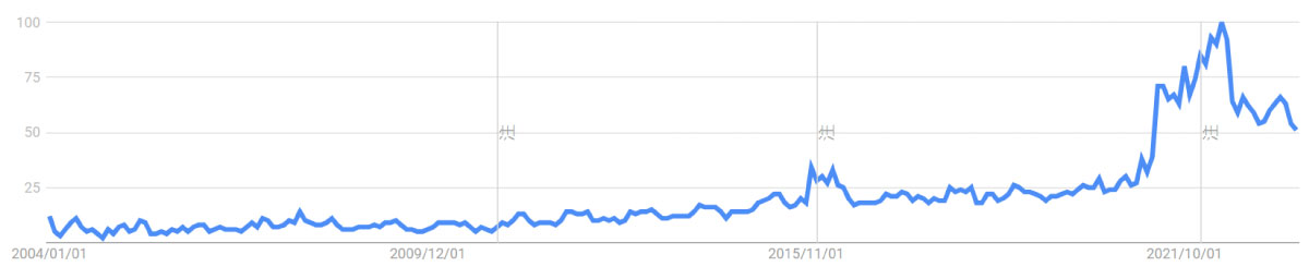 Googleトレンドで「グミ」と検索してみると、2021年から爆発的に検索数が増加しています。昨年が検索数のピークでしたが、現在でもその検索数は高い状態が続いています。
