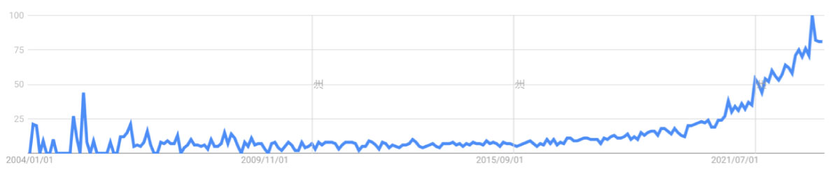 Googleトレンドで「ウェルビーイング」を検索してみると、近年、検索ボリュームが右肩上がりに徐々に伸びていることがわかります。
