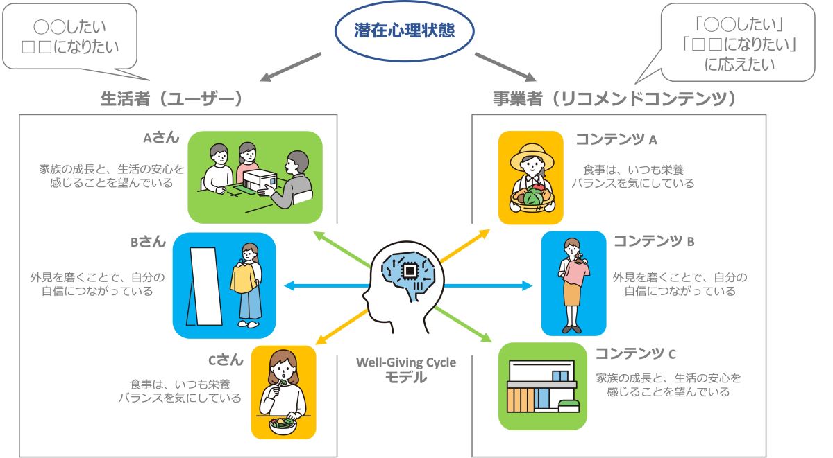 夏堀:主語がコンテンツやモノではなく「人」というのが特長ですよね。従来のリコメンドは、映画の視聴記録や購買情報など、単一のドメインに特化したものがほとんどでした。でもWell-Giving Cycleを発展させていけば、ジャンルやドメインを横断して、生活者一人ひとりをウェルビーイングにするサービスを提供できる可能性もあるのではないでしょうか。