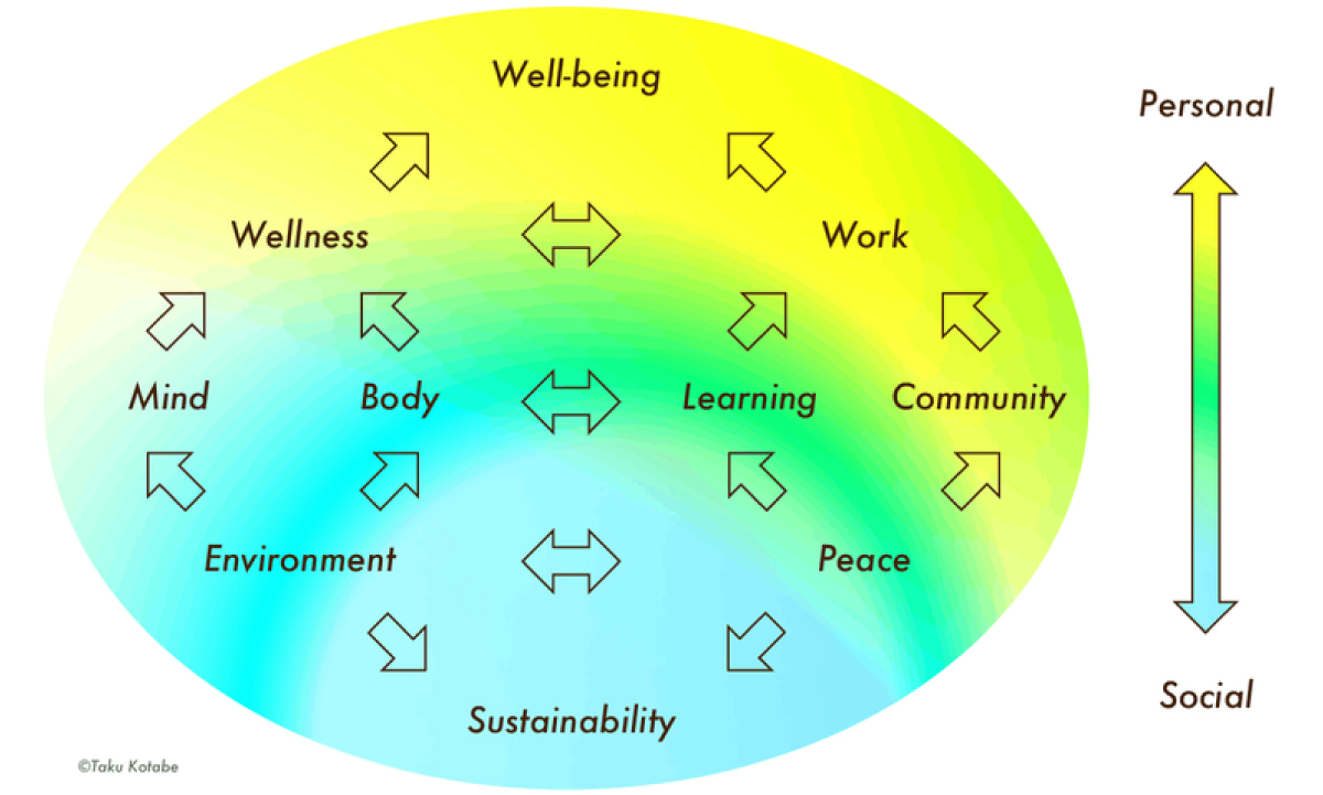 小田部:人生100年時代にウェルビーイングを実現するには、しごと(生きていくための日銭を得る「稼ぎ」および社会への貢献や使命といった「務め」)と健康が大切であり、健康は食べ物と心身の状態に依る。そして仕事は、人と人とのつながりから生まれます。それらが健全に営まれるには、世界が平和である=サステナビリティな状態でなくてはいけない。SDGsの意味でも、今後ウェルビーイングへの注目度はますます高まると思います。