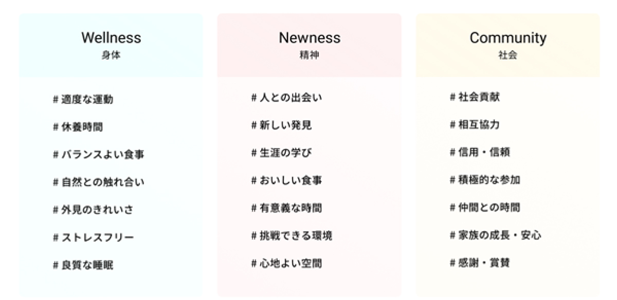 堂上:まさに「主観的Well-Being 21因子」の「新しい発見」を体現したコンテンツですね。大学の論文を生活者に分かりやすいよう言語化・図示し、発見や気づきをもたらす。つまり、そのページを訪れることによってウェルビーイングを感じられる。