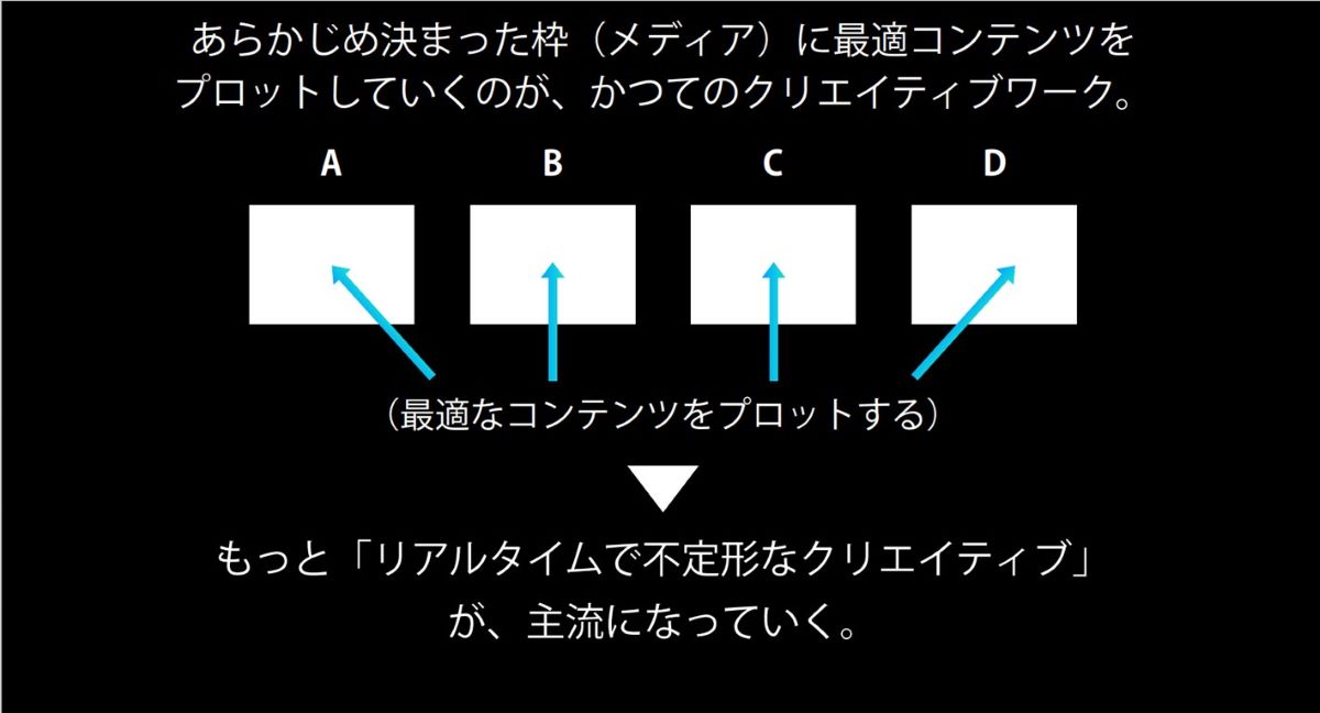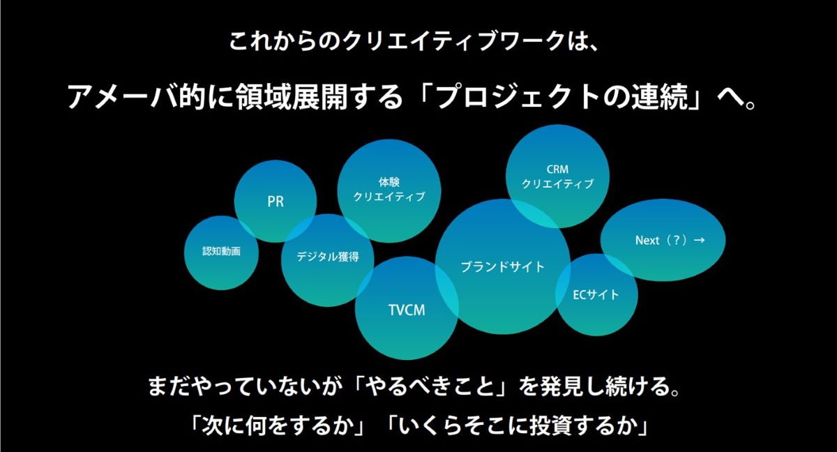 これまでも統合クリエイティブや統合型マーケティングコミュニケーション(IMC)といった概念はありましたが、それよりもっと細かいクリエイティブの実制作やブランド世界の統一など、ディレクションというよりクリエイティブそのものをリアルタイムで自ら行なっていくスタイルです。