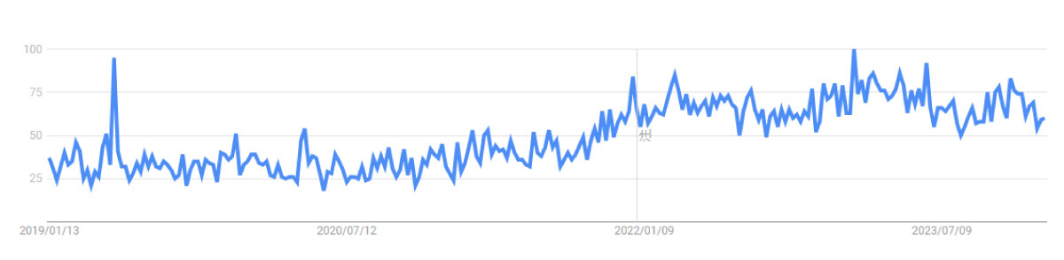 そこで、今回は私のような人間でも、目標を成し遂げられそうな方法として、世の中で注目を集めているスタートの仕方を、“ゆるめスタート”と名付けて紹介していきたいと思います。Googleトレンドで「ゆるめ」を調べてみても、ゆるく注目を集めつつあることがわかるかと思います。