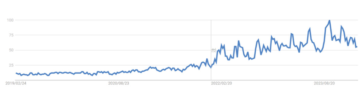 冒頭の先輩との会話の中に出てきた成分は実はレチノールなのですが、Googleトレンドで「レチノール」と調べると右肩上がりのグラフとなり、年々注目度が上がってきていることがわかります。