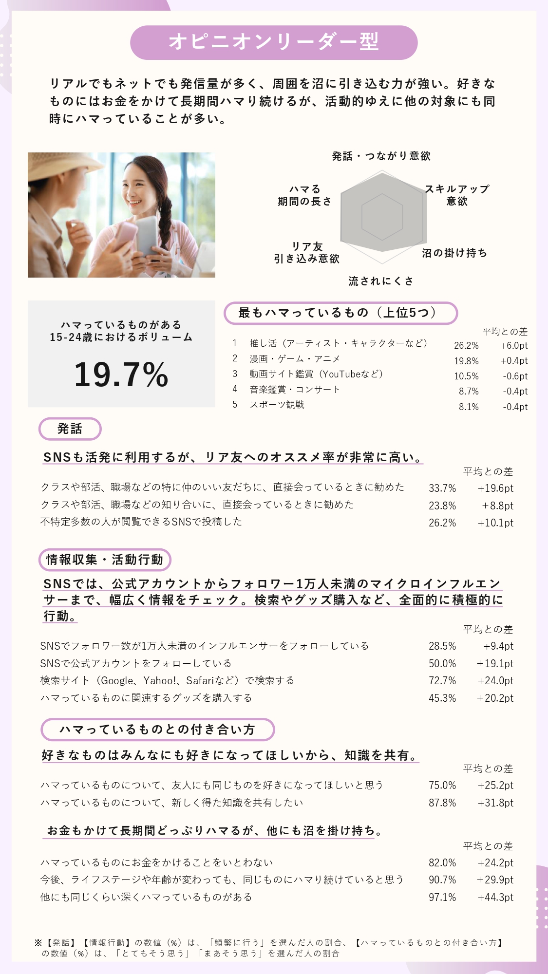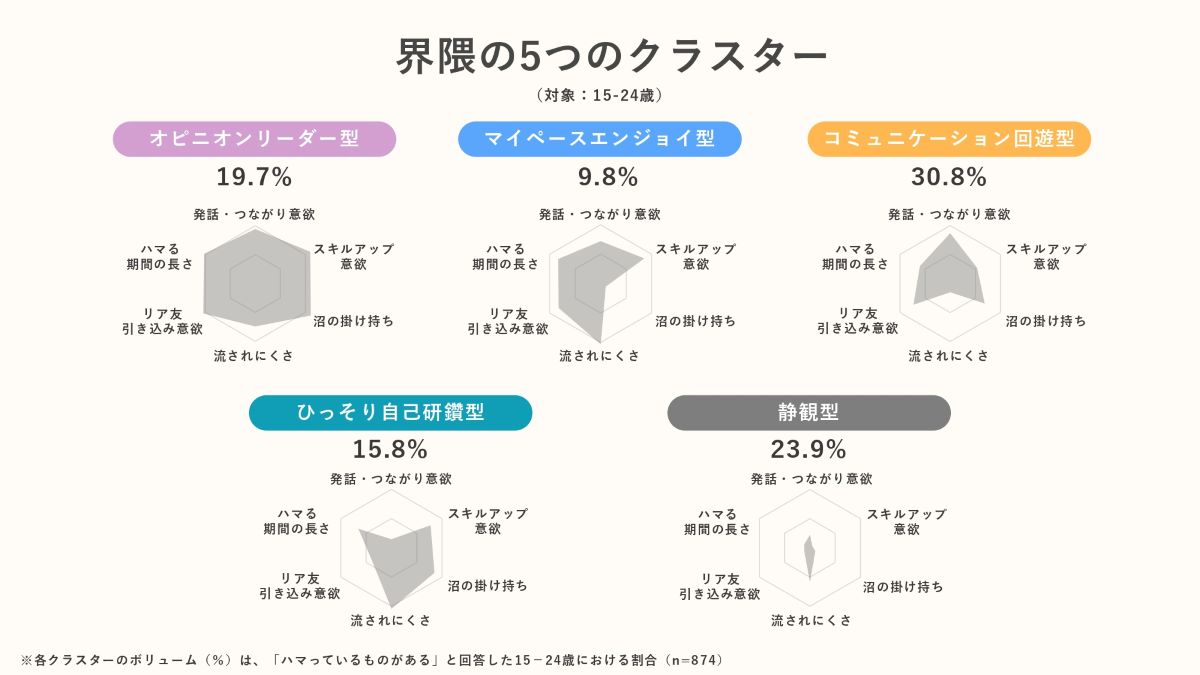※2 各クラスターのボリューム(%)は、「ハマっているものがある」と回答した15-24歳における割合(n=874)