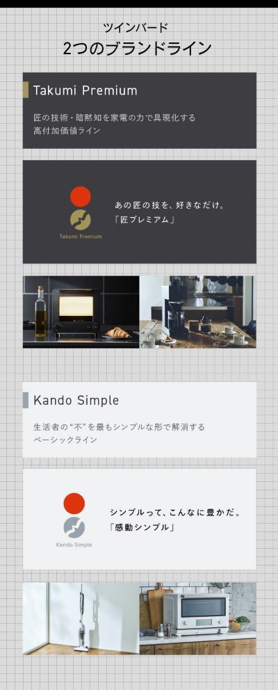 リブランディングを経て、ツインバードは2つのブランドラインを新設した。