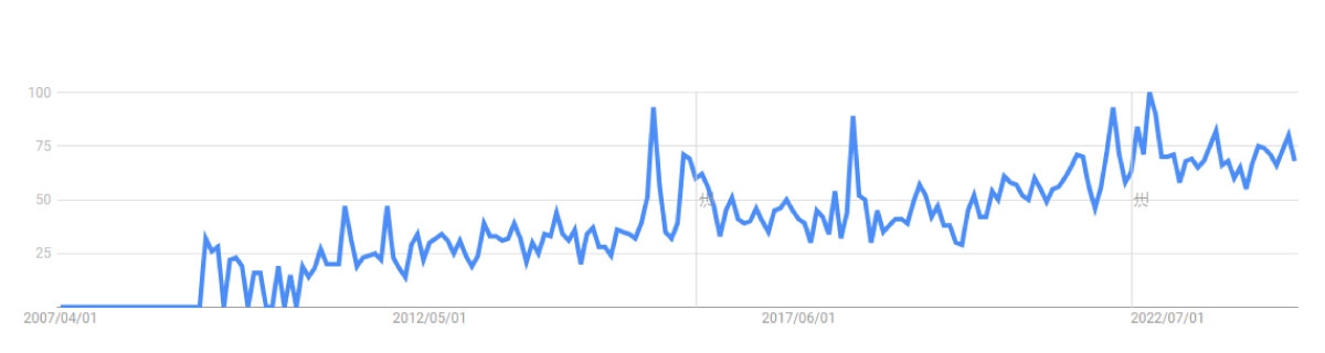 ▼「guilty food」検索量推移(2007年以降・すべての国)
