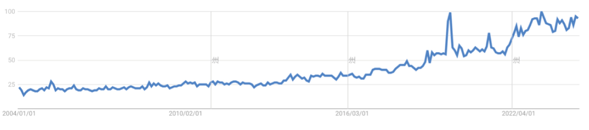 Googleトレンドで「決済」というワードを調べてみると、検索ボリュームが右肩上がりに徐々に伸びており、「決済」に対しての関心が強まっていることがわかります。