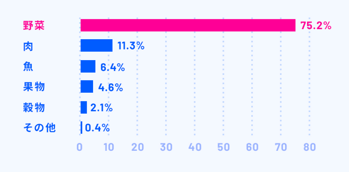 中でも、食べられる部分まで捨ててしまっている食品としては、野菜がトップで野菜の使い方にまだまだ改善の余地を感じている人が多いのも事実です。