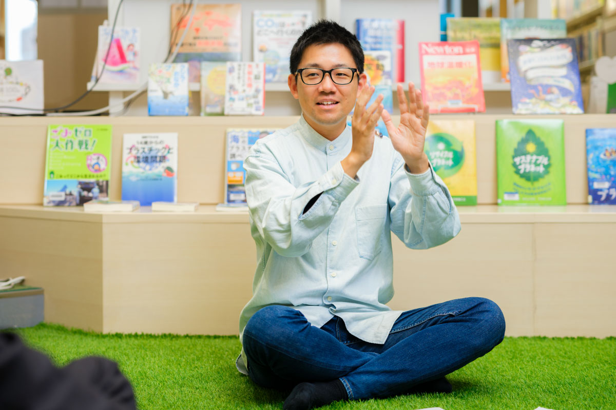 まさか、あぐらで車座になってお話をうかがうとは。こんな空間がライブラリーの真ん中にあるなんて、とても開放的ですね。