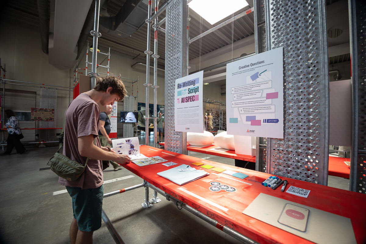 今年のフェスティバルでは、「AI SPEC」のマンガ展示に加え、Ars Electronica Futurelabが独自に開発した“Re-Writing the Script”の手法を導入しました。複数の未来像がマンガ形式で提示され、来場者がその物語を自由に書き換えることで、常識や固定観念に挑み、新たな視点で未来を再考するプロジェクト「Re-Writing the Script of AI SPEC」が実施されました。