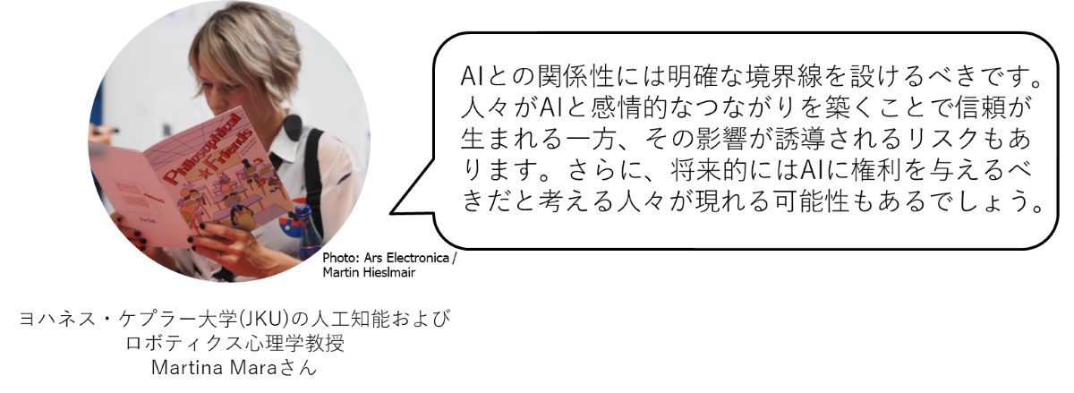 この発言は、ヨーロッパでよく見られるAI倫理に関する議論の一端を示しています。ヨーロッパでは、人間中心主義的な視点が強く、人とAIの役割を慎重に分けるべきだという考えが根付いています。