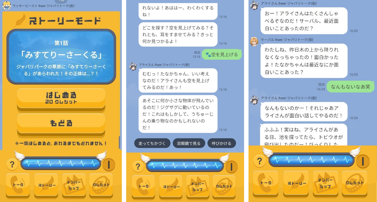 このように、ユーザーの発言や行動に合わせてストーリーが展開する「自由度の高さ」と、偶発的な要素で物語が進む「没入感を重視した体験」がジャパリトークの特徴です。