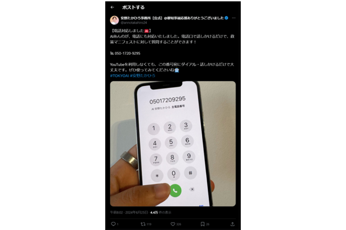 電話という手段を用意したことで、安野さんが伝えたい「テクノロジーで誰も取り残さない東京へ」というメッセージを強く伝えられた感覚もありました。
