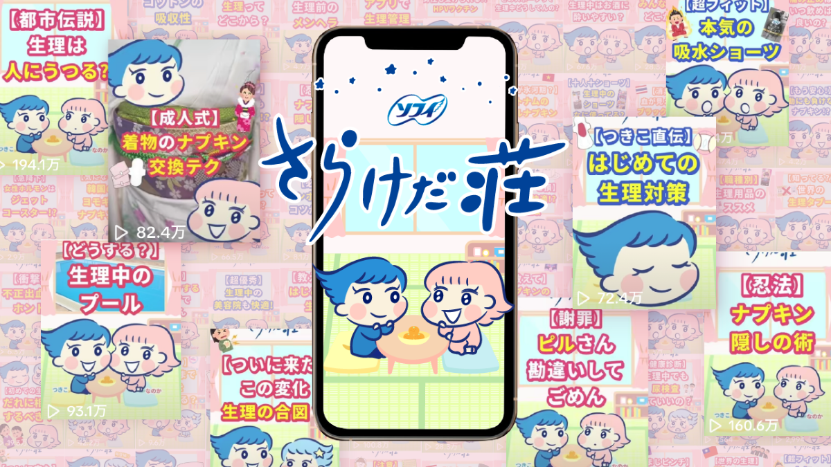 ユニ・チャームの生理用品ブランド「ソフィ」が2023年4月に開設したTikTokアカウント。若年層が生理に関する正しい知識を得ること、お互いをより理解し合えることを目的に、「生理の悩みを一人で抱え込まず解決できる!」ことに貢献するコンテンツを定期配信する。
