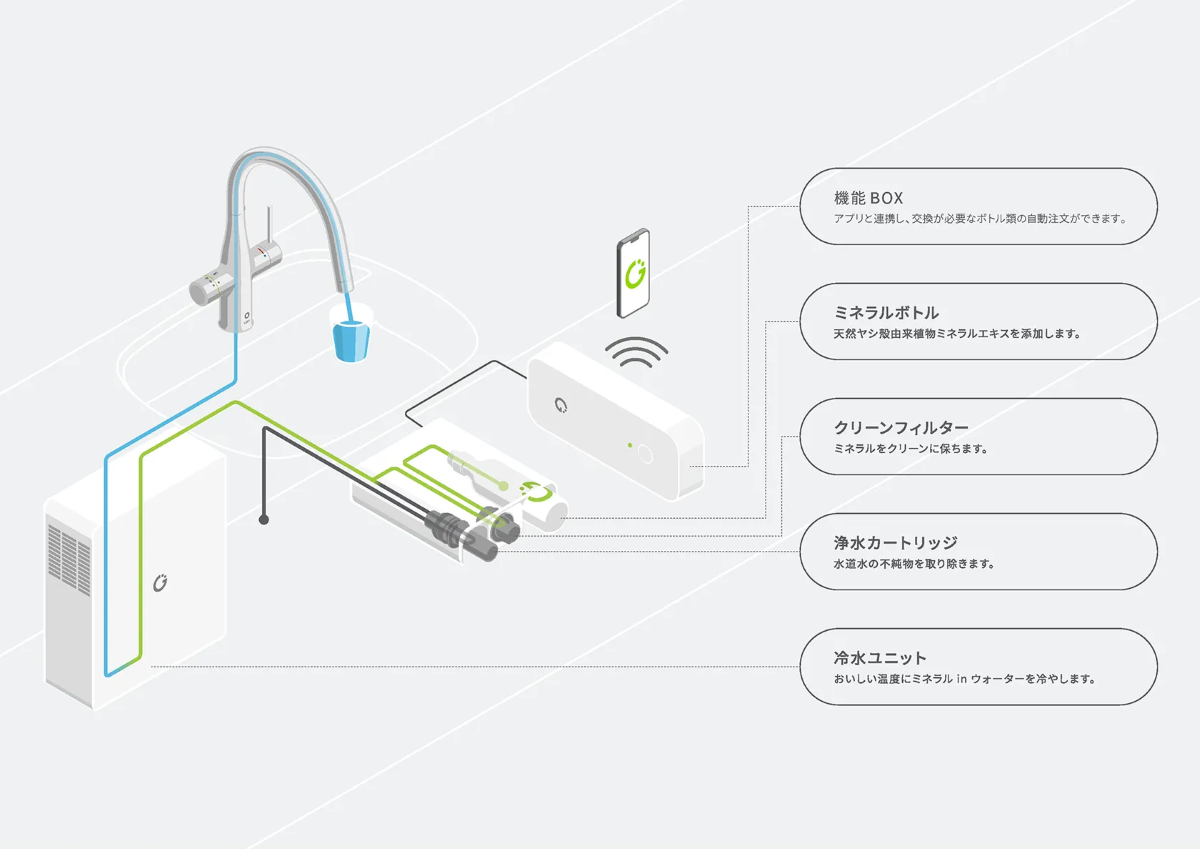 山﨑:Greentapはエキスがなくなったらミネラルボトルやフィルターの交換が必要になるのですが、自分で残量をチェックすることなく、自動注文できるシステムを取り入れました。