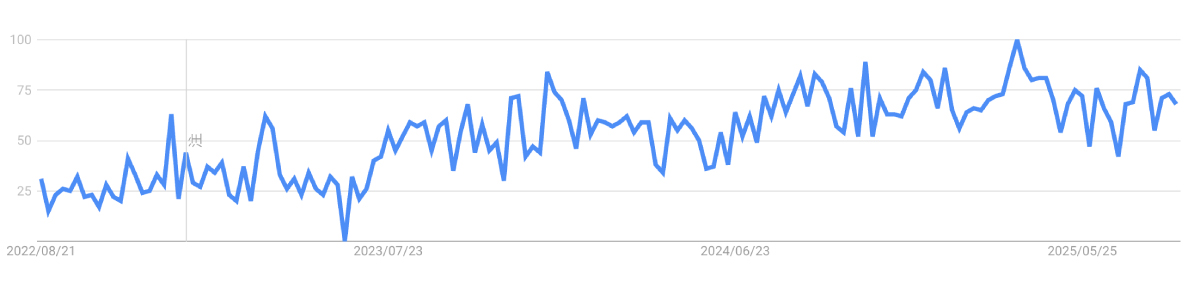 実際にGoogle トレンドを見てみると、YouTubeで「小学生 メイク」の検索数がここ3年間でじわじわと伸長しており、いままでは大人のものだと思われていた”美活”が10代以下の小学生にも徐々に広がってき始めていることが伺えます。