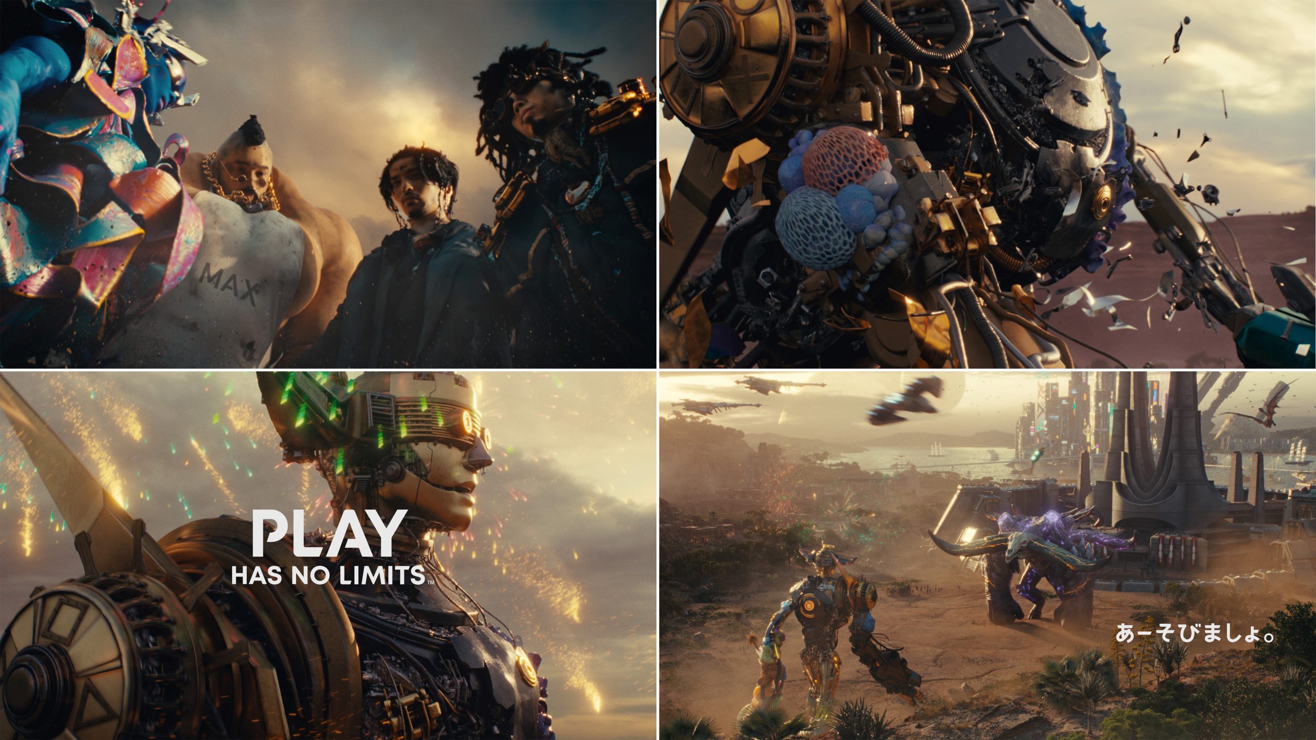 勢喜さんが“△”、常田さんが“〇”、新井さんが“×”、井口さんが“□”を担い、それぞれの遊び心が集うことで、常識や限界を突破した遊びが生まれる、という、PlayStationの「Play Has No Limits」のDNAを象徴するブランドキャンペーン。