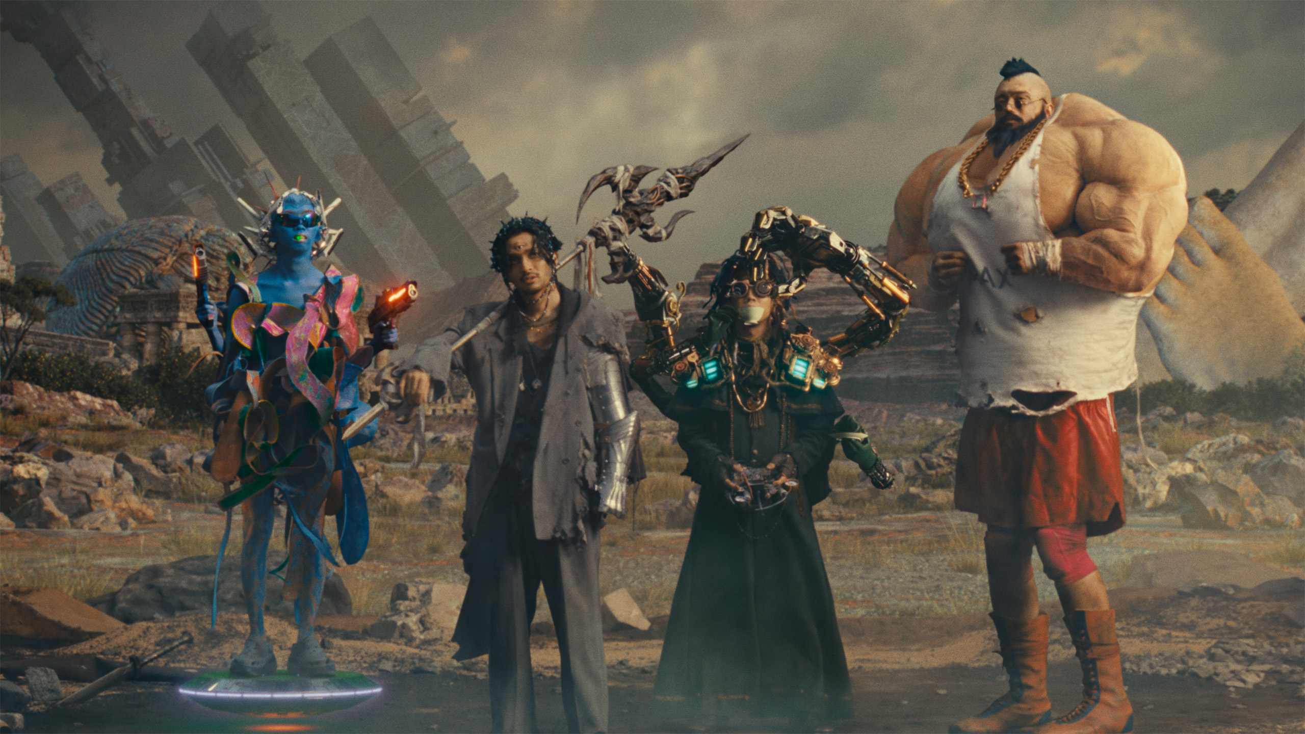 King Gnuの4人が“△〇×□”をそれぞれまとい、PlayStationの世界へ。4人の前に立ちはだかるのは、巨大モンスター「ダークヌー」。劣勢に立たされた4人は、まさかの「合体」。限界突破した「ジャイアントヌー」が誕生する。