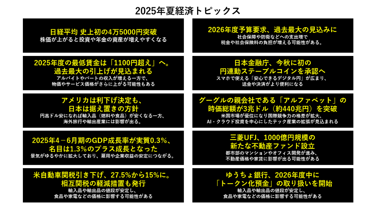 2025年の夏は、日経平均株価の上昇や関税引き下げ、GDPのプラス成長など象徴的な金融ニュースが報じられました。もちろん、こうしたマクロ経済の動きが私たち一人ひとりの生活実感や行動に直結しているかといえば、必ずしもそうではありません。実際、今回実施したアンケート調査(※1)でも「印象に残ったニュースは特にない」と答えた人が7割を超えました。日々の金融ニュースは、生活者にとってまだ距離の遠い話なのかもしれません。