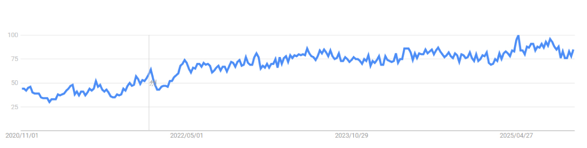 自分の忘れ物癖をどうにか直せないものかさまざま調べていたところ、なんと「忘れ物」の検索数がここ数年じりじりと高まっていることが分かりました。(忘れ物をする人が私だけではないと感じ、なぜかちょっとホッとしました…)