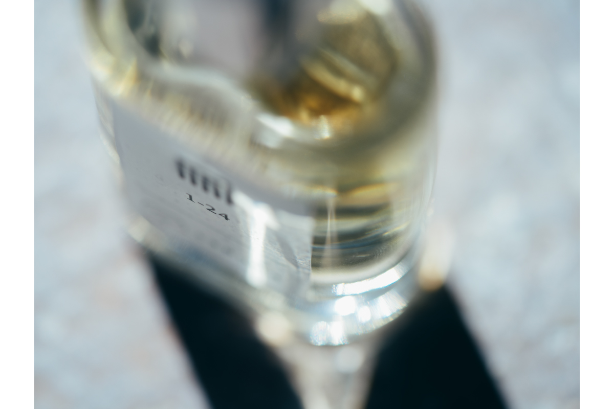 制作した順と、その香りが何回目の試作で完成したかを示しています。たとえば「1-24」なら、1番目につくり、24回のレシピの修正でできあがった香水、という意味です。規制変更などでレシピを変えた場合に、この数字を更新することで使う方にわかるようにしたいので。また、ラベルのマークも、製品ごとにちょっとずつ違うんです。