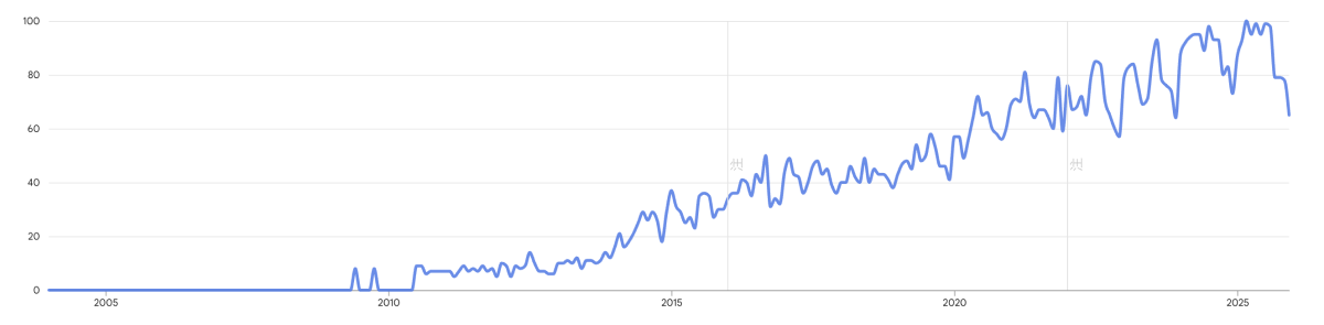情報が溢れる現代社会で、シンプルかつミニマルな暮らしを大切にしたい。タイニーハウスならぬトレーラーハウス(移動式住居)は、そんな願いが叶えられる画期的な住まいです。住まい初期費用の抑制や、設置場所の柔軟性という観点でもメリットは多く、セカンドハウスという立ち位置でも所有を検討しやすいのもポイントです。Googleトレンドをみてみると2010年を皮切りに検索量は増加傾向を辿っており、2011年の震災発生時や2020年以降のコロナ流行など、暮らしの安全が脅かされる事象によっても注目を集めてきていることが伺えます。