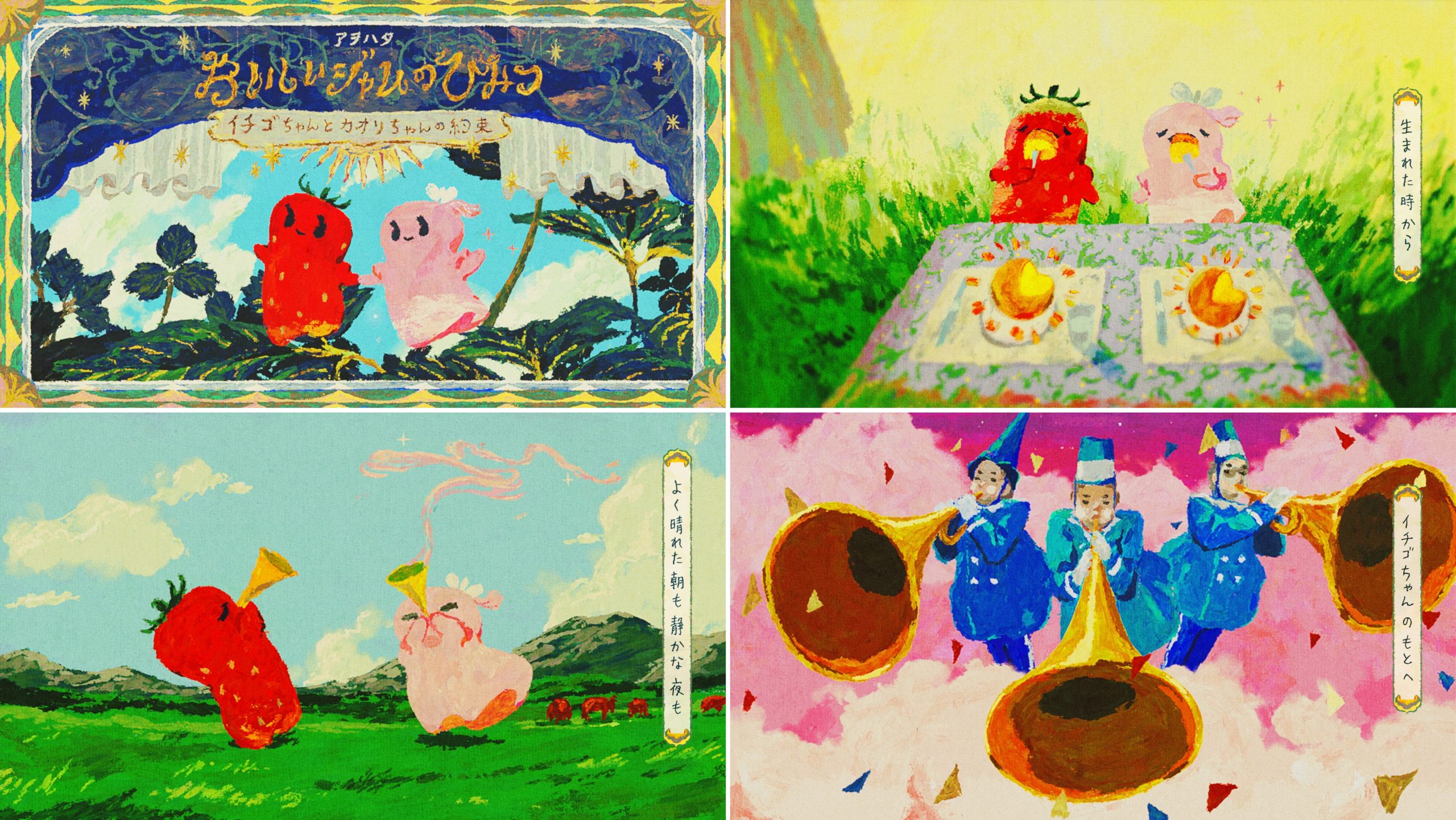 ジャムづくりへのこだわりのうち、おいしさのポイント となる “ 香り ” にフォーカスし、イチゴちゃんとカオリちゃんというキ ャラクターを主役に、思わず覗いてみたくなるようなストーリーに仕立てました。アニメーションと歌でジャムづくりの世界を優しく、彩りのある世界観で表現しています。