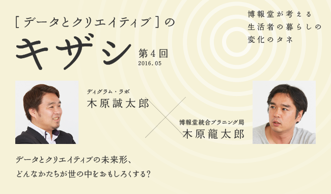 第四回目は、ディグラム・ラボの木原誠太郎(きはら・せいたろう)氏をゲストに、博報堂統合プラニング局・木原龍太郎(きはら・りゅうたろう)が、広告業界でも旬のトピックス、「データとクリエイティブ」について語ります。なお、本企画初の“実の兄弟”対談です!