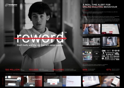 今回の受賞作で言うと、SNS上のいじめを減らすために開発された「Reword」というオーストラリアの作品がゴールドを受賞しました。子供達がいじめにつながる文章をSNSに打とうとすると、ワードソフトでスペルを間違えたときのように、その瞬間に警告が現れるJava Scriptを利用したグーグルクロームのエクステンションです。ネット上のいじめ問題は、単に啓蒙したりいじめた子供に指導したりするだけではなかなか解決しない難しい問題です。Rewordは、メールを書く瞬間を捉えていじめを未然にふせぐという点と、出来心で侮辱的な文章を書いてしまった子供達に正しいモラルを教育するというふたつの点で、人間性をとらえた本質的な解決策になっていると思います。