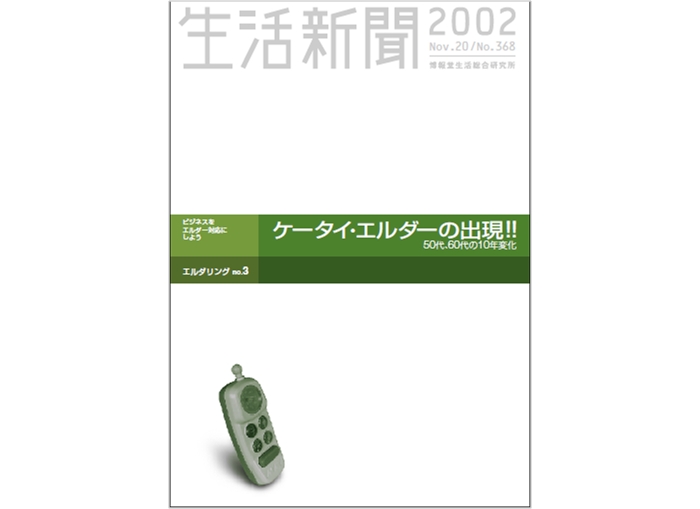 生活定点2002の刊行を機に、1992年の結果と比較しながら、50代、60代の変化をまとめている。低迷する日本社会を悲観する気持ちが高まっているのは全体動向と同じだが、興味深いのはケータイを活用してるエルダーが大幅に増加していること。この10年でエルダーは「高度通信人間」に変化を遂げた。