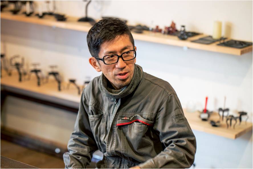 小藤:はい。鍛冶工房弘光の主力商品は燭台で、そのほかに風鈴なんかもつくっています。もともと、そういった商品を通して、鉄の素材感、その魅力を消費者の方に知ってほしいという気持ちはすごく強かったんですが、職人として鍛冶仕事に携わるうち、商品として完成したものにはない鉄の魅力というのも感じるようになったんです。