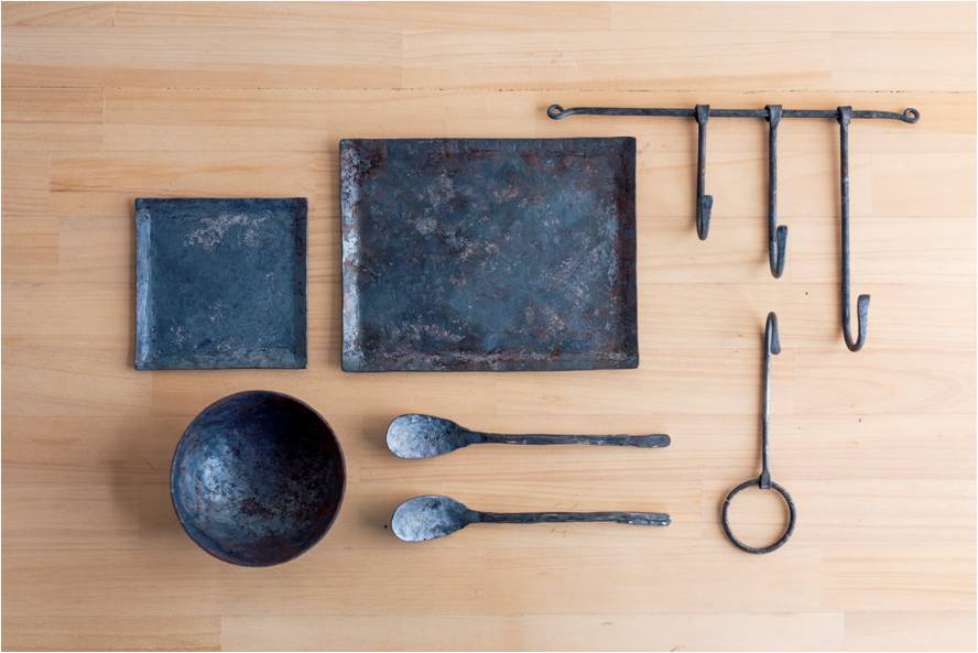 小藤:それで、燭台をつくった後に出る端材を活かす形で、少しずつ、自分が好きな、いいと思える商品をつくり始めたのが最初です。ブランドというほど大したものではないですが、先代・先々代が残した素材でつくっていること、完成形の一歩手前の姿であることなど、鍛冶工房弘光のものにも、もちろんほかの商品にもない珍しさや面白さがあると思います。あえて錆止めは施していませんから、当然錆びていきます。でもその過程も楽しんでいただきたいんです。人だって、いつまでも若い姿のまま変化しない人なんていないじゃないですか。そして、年とともに人としての味わいは増していきますよね。