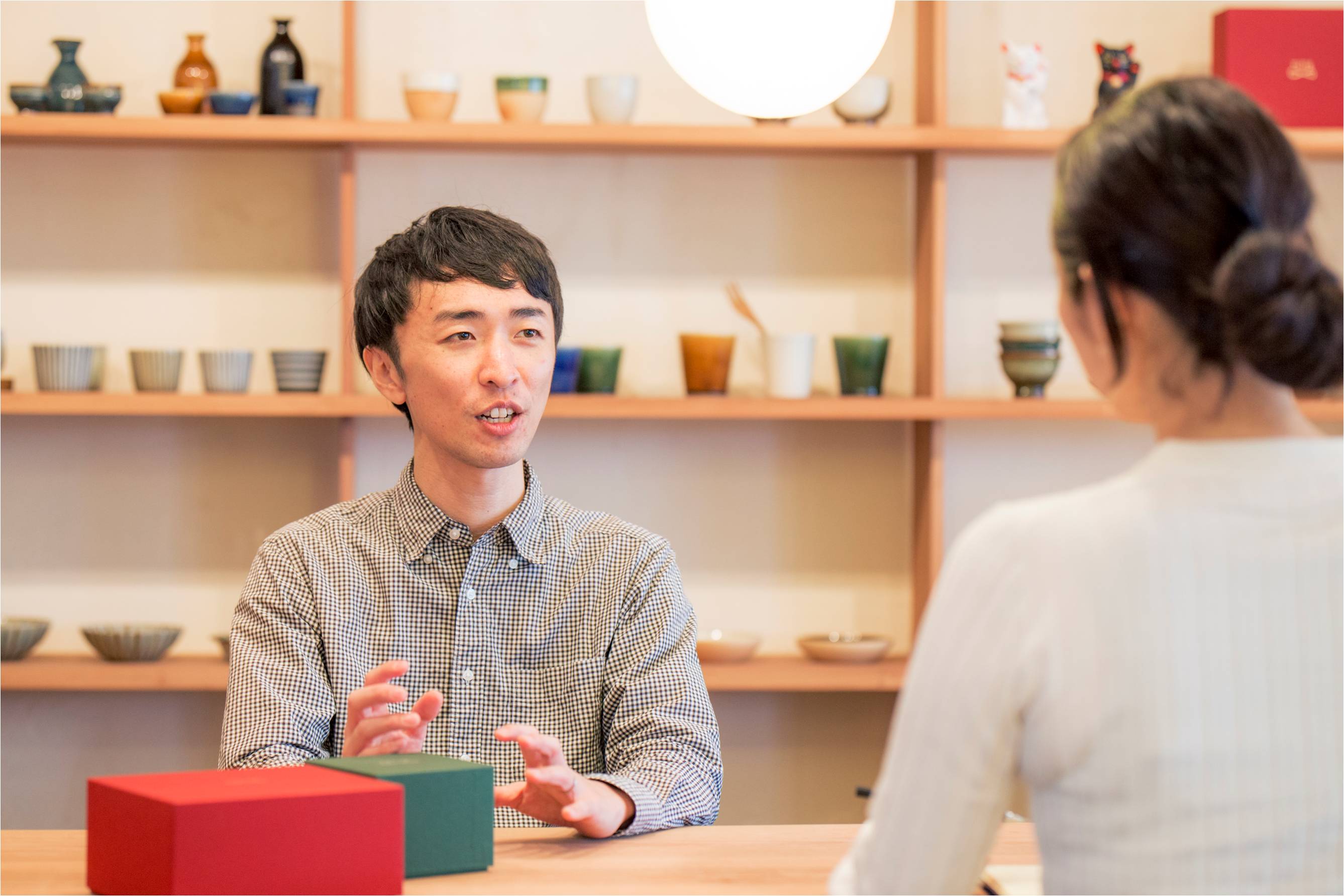 問い合わせがあったら、行商みたいに僕が出向いていた。器や食品を箱に詰めて持って行って、カフェで打合せして、引き出物を決めるんです。今はギフト全般ですが、最初引き出物から始めたのは、一回の単価が大きいことと、在庫を持たなくていいことからでした。