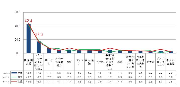 1位の「英語/英会話」は、娘たちにも身につけさせたいですね。