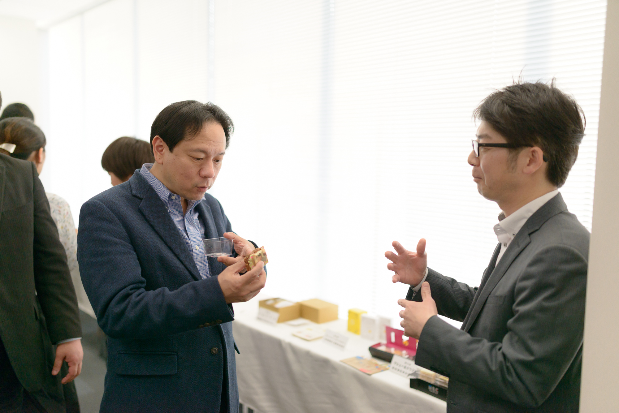 その後、フリータイムとなり、展示商品等を眺めながら、参加されたみなさま、そしてブラたま編集部メンバーが自由に交流。あちこちで名刺交換が行われ、会場は一段とにぎやかに。同じ活動エリア、近しい業種、課題意識などを持つみなさまで、特に話が盛り上がっていました。