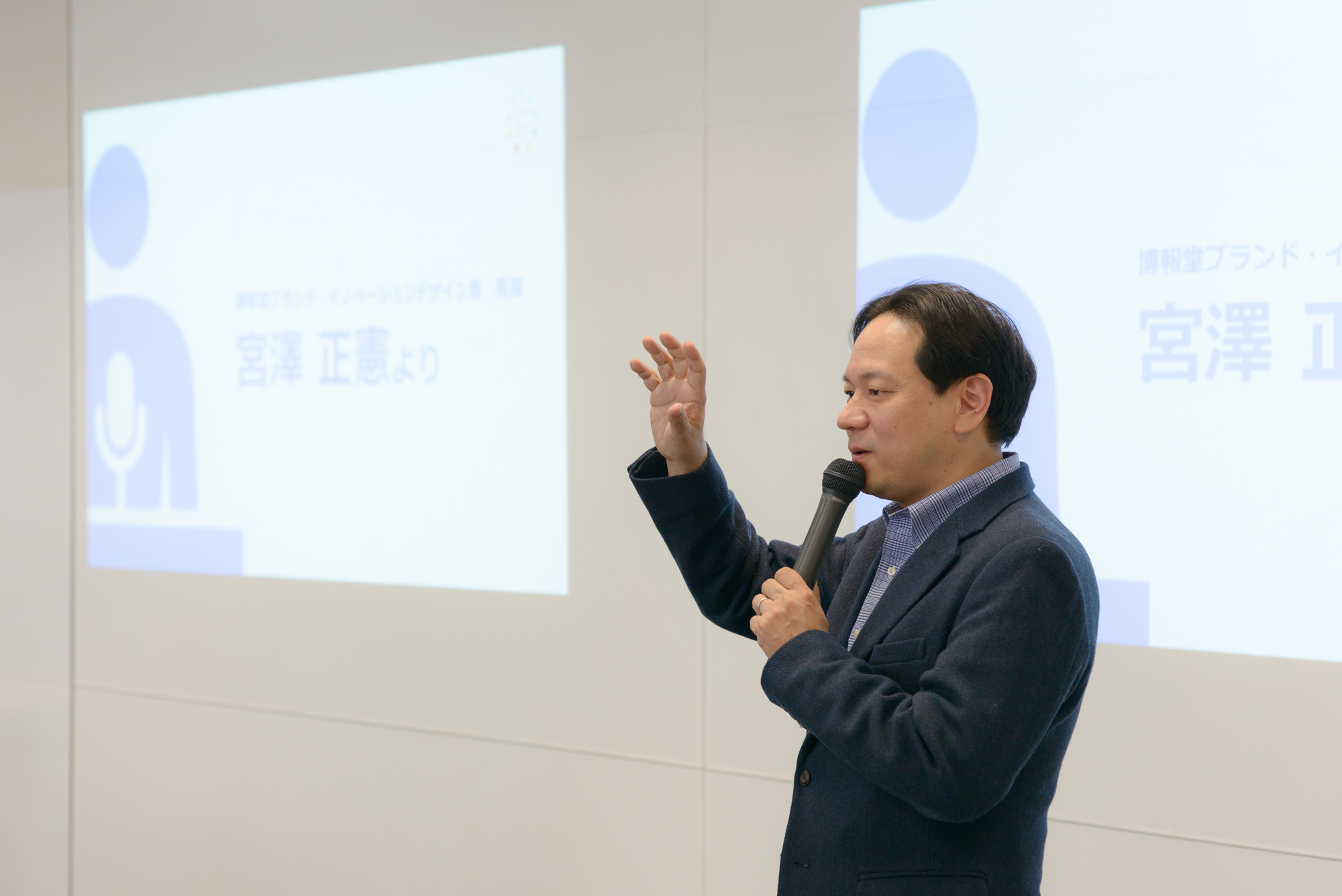 まず、私たちブラたまメンバーが所属する「博報堂ブランドデザイン」の宮澤代表から挨拶。宮澤から、「博報堂ブランドデザインでは、普段業務の中で、その企業や地域でしかできないブランドづくりのお手伝いをしています。みなさまのブランドは、僕らから見てとてもイノベーティブなブランド。そういった事例から学び、ご紹介し続けることで、全国で奮闘しているブランド担当の方々へのヒントになるのではと考えています。今日は、この場でいろいろな方と、我々も含めて交流をさせていただくことで、みなさま方にも何かヒントになればいいと思いますし、我々も勉強させていただきたいと思います」とコメントさせていただきました。
