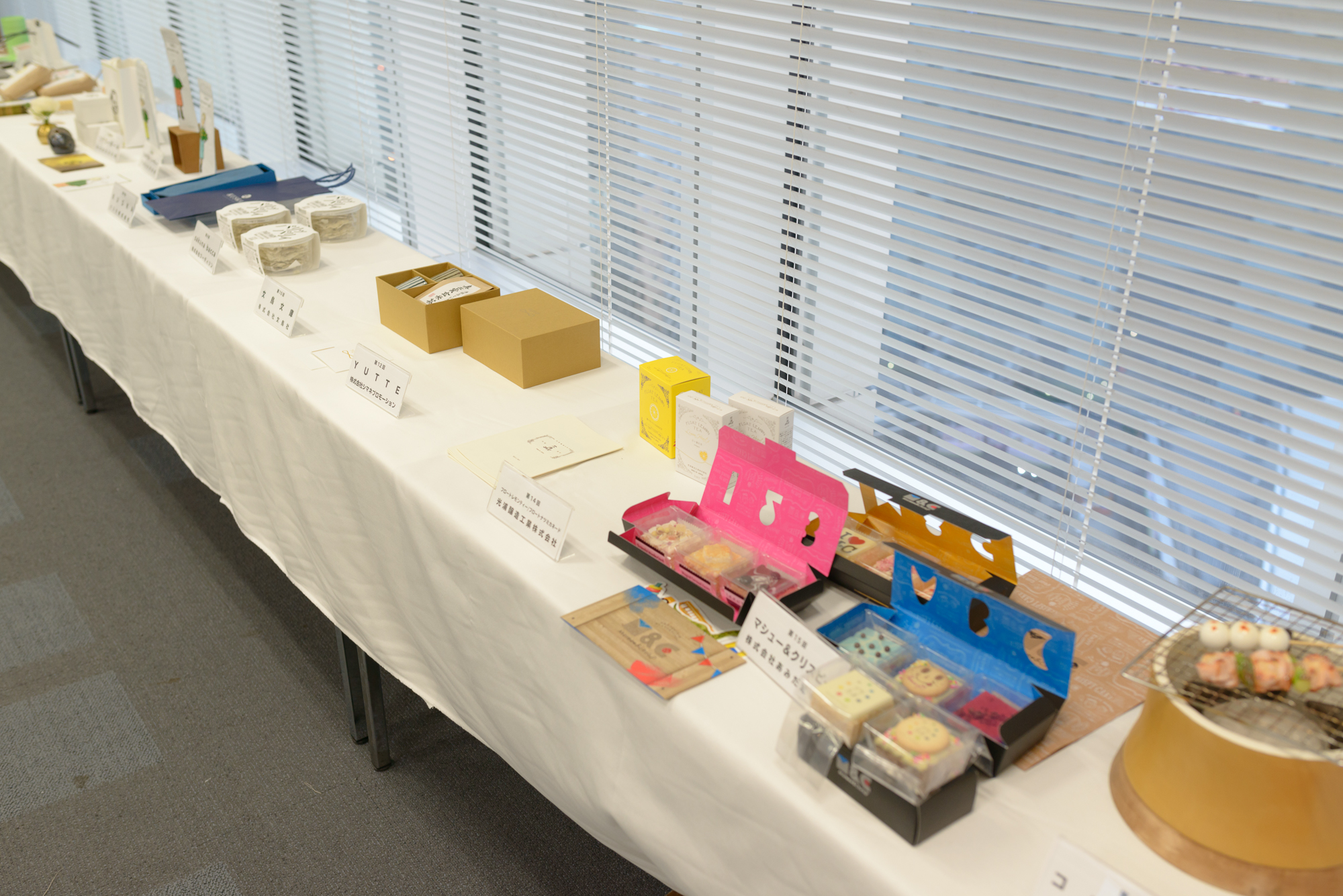 参加者のみなさまにお持ちいただいた商品が並び、会場となった会議室は一気に華やかな雰囲気になりました。