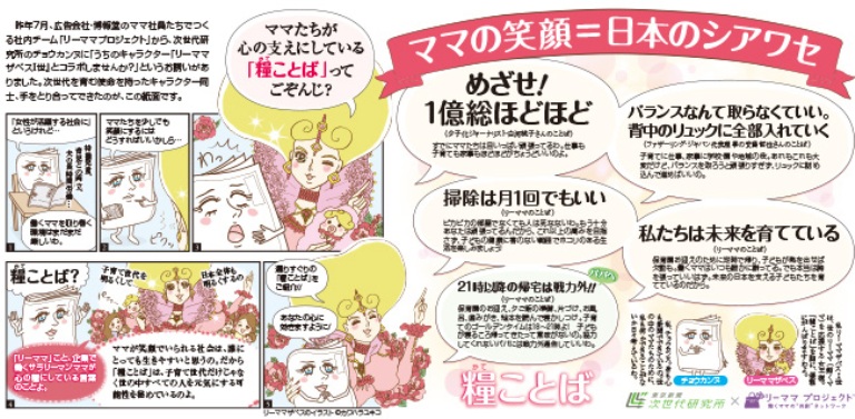 博報堂の社内プロジェクト「リーママプロジェクト」が、活動を通じて集めたママたちの迷いを払拭し、元気にする「糧ことば」。今回は、東京新聞の社内の若手有志が作ったチーム「次世代研究所」とリーママプロジェクトによるコラボ企画に、一般読者の方からいただいた糧ことばをご紹介します。
