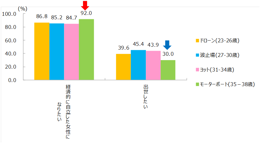 美咲(24):確かに「出世したい」の意識は低いですもんね。反対に「自立した女性になりたい」っていうのが最も高いらしいですよ。その辺りの意識ってどうですか?