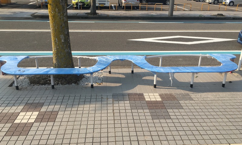 ベンチ、花壇、階段、そして博物館・・・ 目に飛び込む道路施設がみんな◯—◯ ◯—◯ ◯—◯。