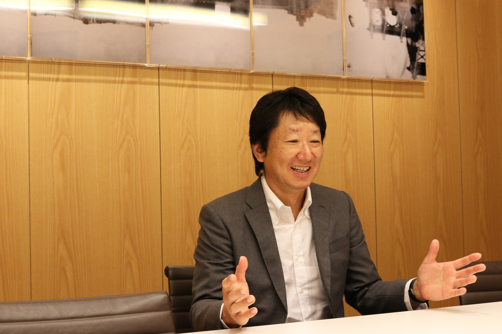 そうですね。環境は大切ですよね。代表は「インナーブランド」と表現していますが、ジェーピーディーエイチも昨年ディー・ブレーンと同じビルに引っ越し、インテリアデザイナーの勝田隆夫さんに依頼し、ディー・ブレーンのオフィスとはまた一味違うデザインで作っています。ここで働く社員の内面から自然と意識が高められるよう、デザインが徹底されています。たまに、このオフィスを自分の仕事の参考にしようとしているのか、壁のところをメジャーではかっては「なるほどなるほど」なんて言いながら、メモをとっている社員もいます(笑)。