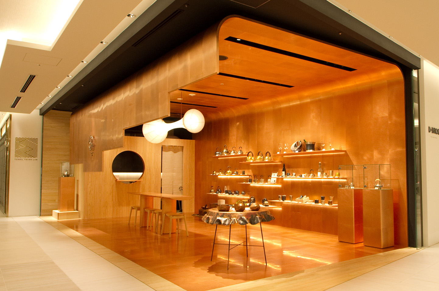 弊社の手掛けた仕事をいくつかご紹介すると、たとえば先日オープン時に話題となったGINZA SIXでは10件のショップインショップを手がけました。なかでも玉川堂は人間国宝が打った銅板を床・壁・天井・棚まで現場作業にて施工された難易度の高い仕上がりは目を見張るものがあります。